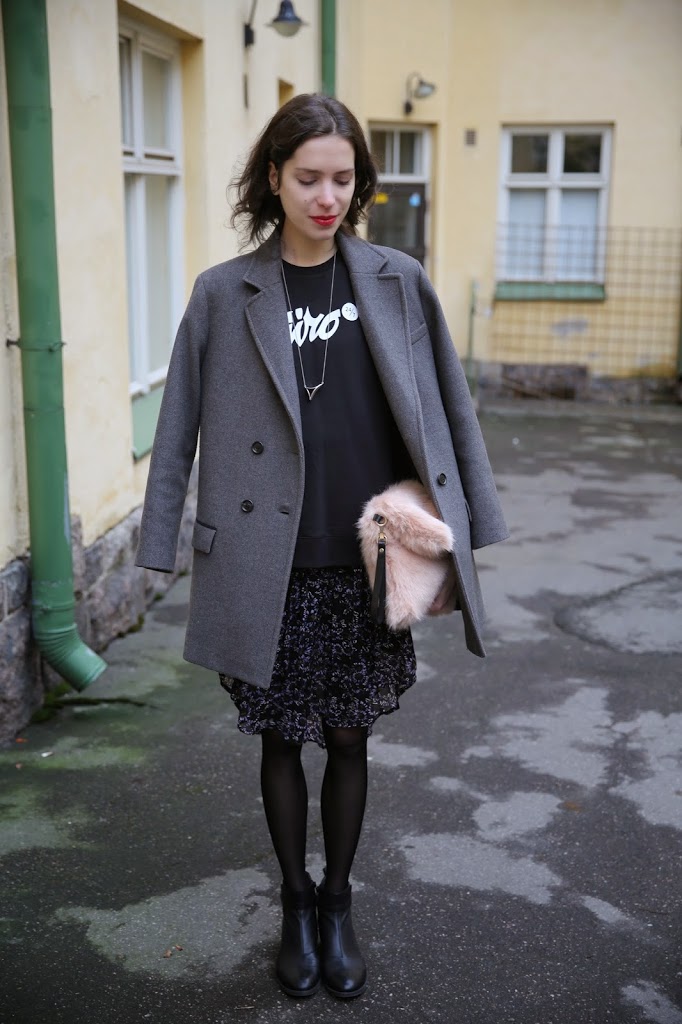 I’m wearing: Dress - Free People, Sweatshirt - Burö 24/7, Boots - Vagabond, Bag - River Island, Necklace - COS, Earrings - Tory Burch, Coat - Isabel Marant for H&M