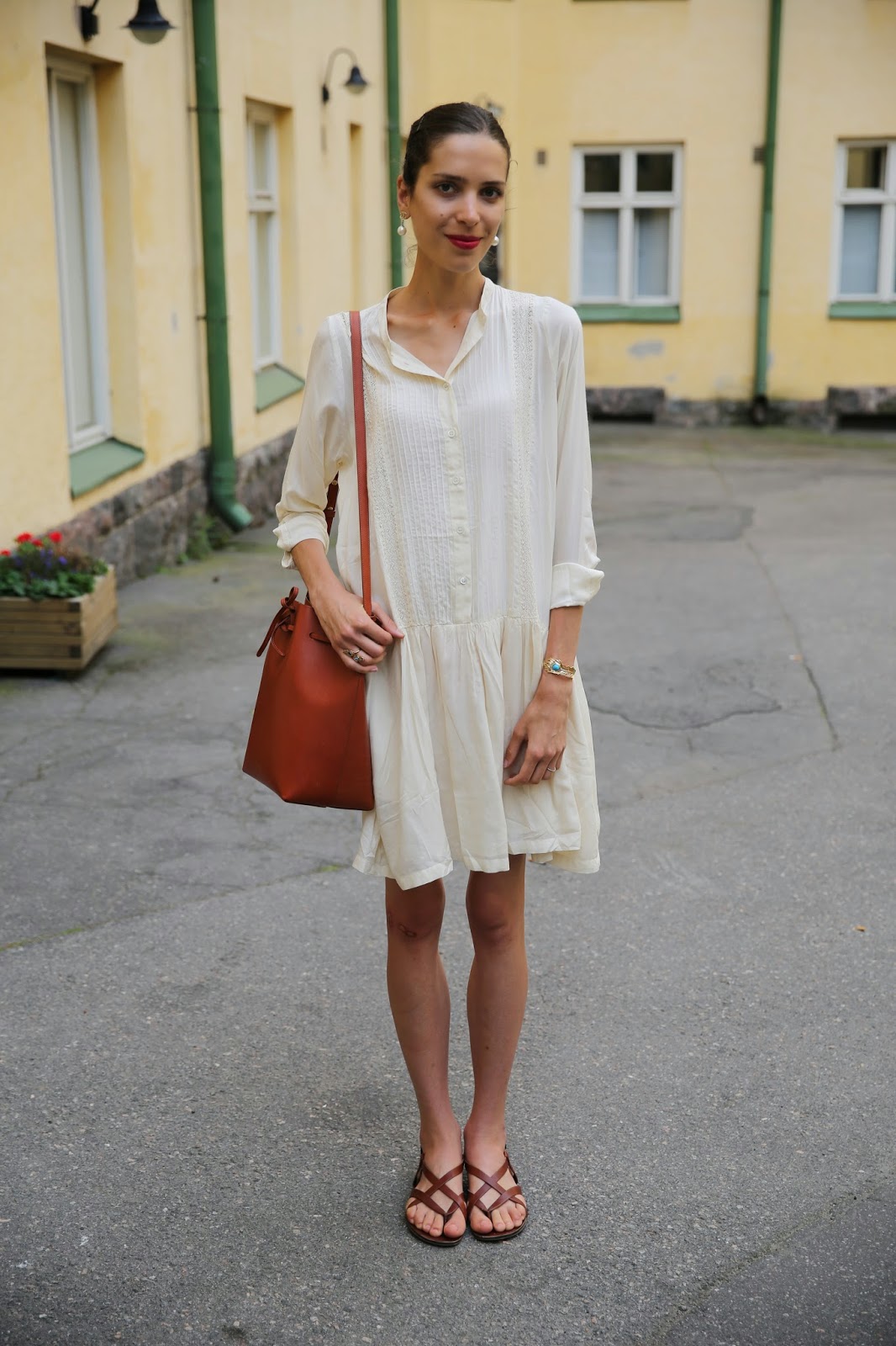 I’m wearing: Dress - Ganni, Sandals - Vagabond, Bag - Mansur Gavriel, Ring & cuff - HOH1960, Earrings - Chanel, Lipstick - Estee Lauder