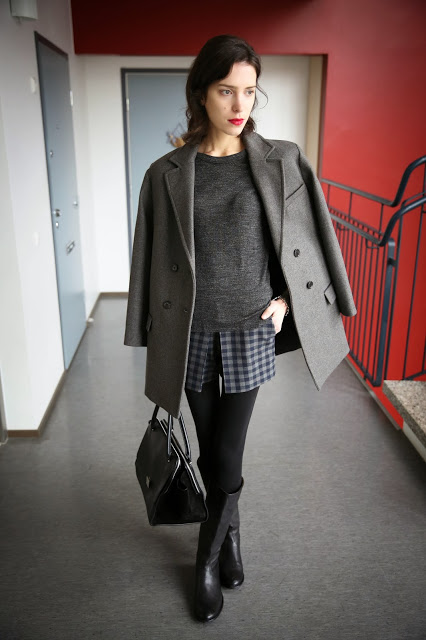 I’m wearing: Boots - Frye, Tights - Marc O’Polo, Shorts - Zara, Bag - Celine, Top and coat - Isabel Marant pour H&M, Cuff - Deni design
