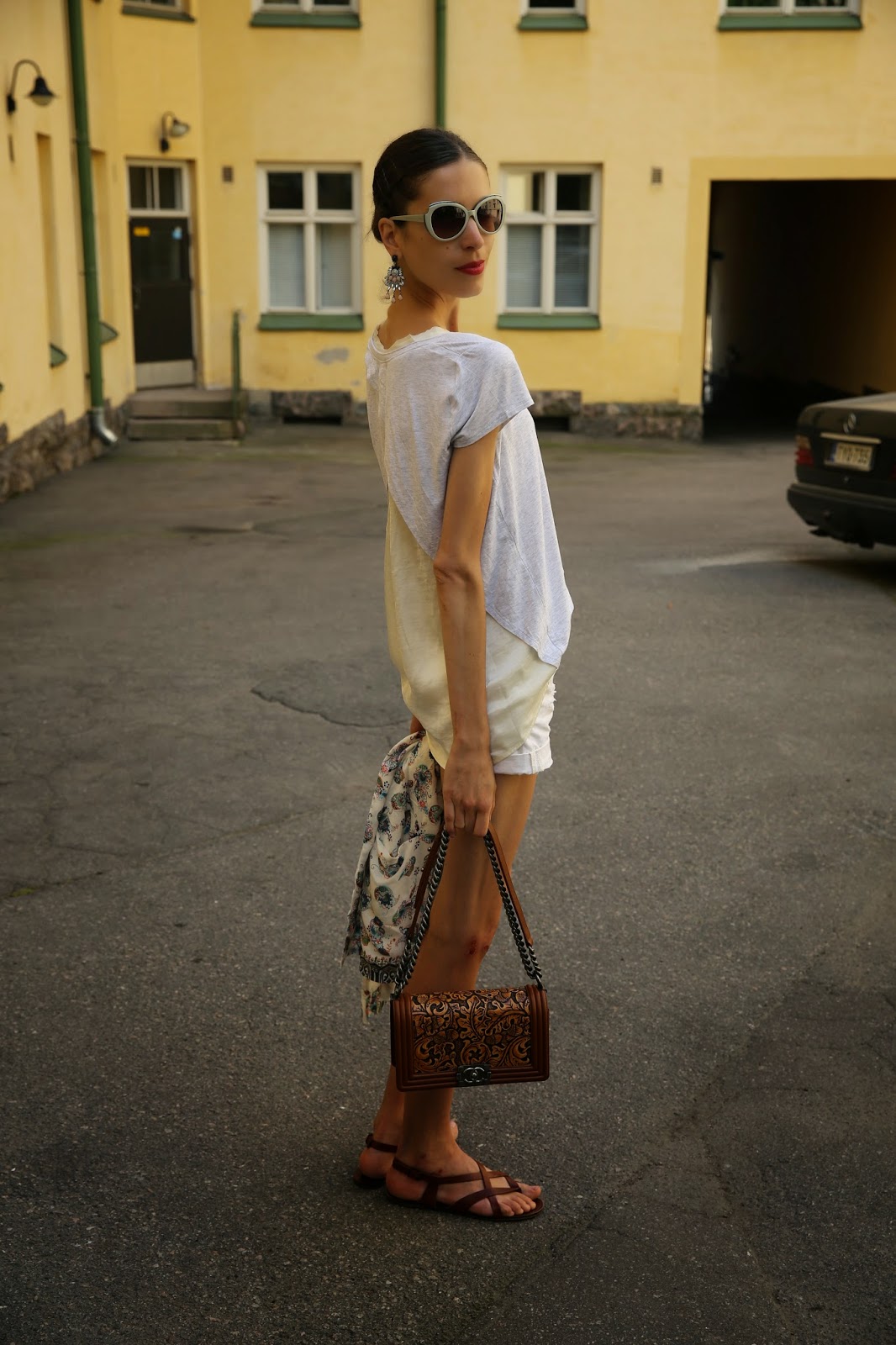 I’m wearing: Bag - Chanel, Kimono & earrings - Choies, Sandals - Vagabond, Sunglasses - Marc by Marc Jacobs, Shorts - Zara, Top - JCrew