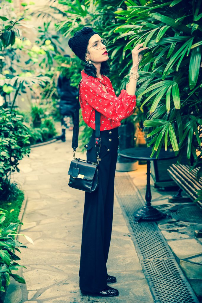 If I’m not wearing any, I do “touch up” my outfits with the red lipstick. I feel like girl can “conquer” the world wearing red lipstick. 🙂 In today’s outfit, my touches of red are quite many, from a really cool bag strap to one of the latest additions in my closet - this beautiful blouse by Rixo.