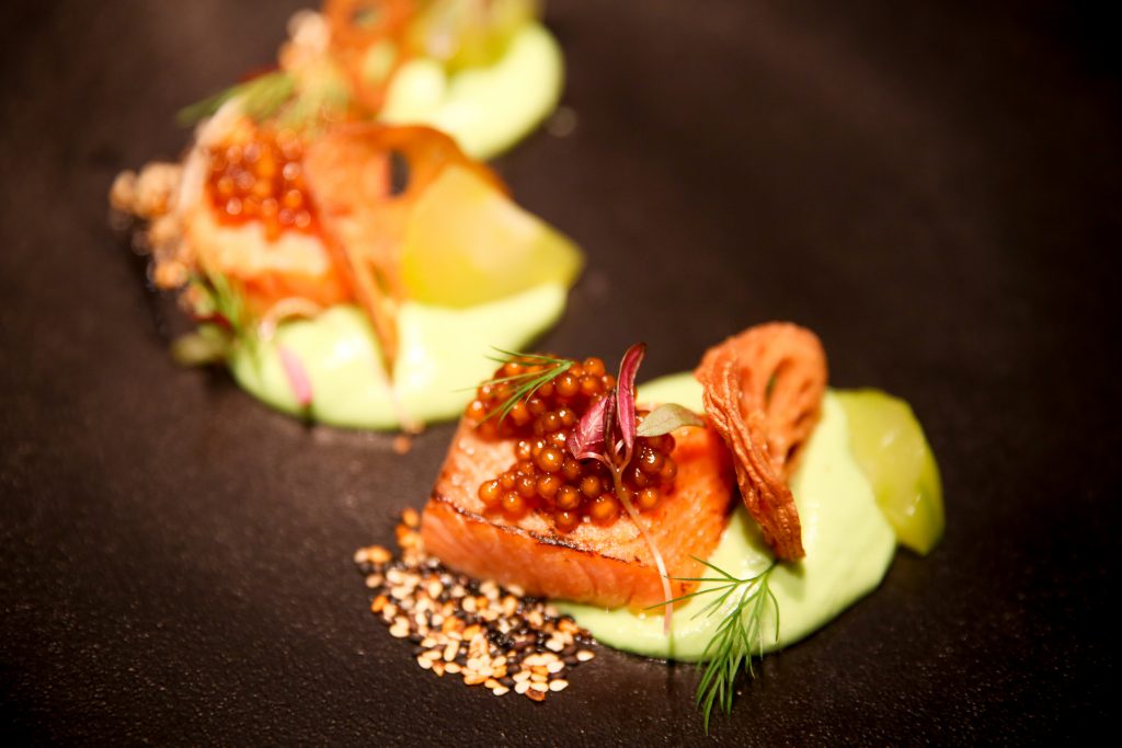 First starter was seared salmon on avocado puree with tapioca seeds, dried lotus root and pickled cucumber. I have truly enjoyed this dish, it was a light, refreshing starter and absolutely wonderful combination of tastes, crunch and it left me wanting to have more of it. Tapioca seeds are unusual “agent” in dishes prepped around Helsinki so it was something refreshing to taste and see how it works in combination with salmon.